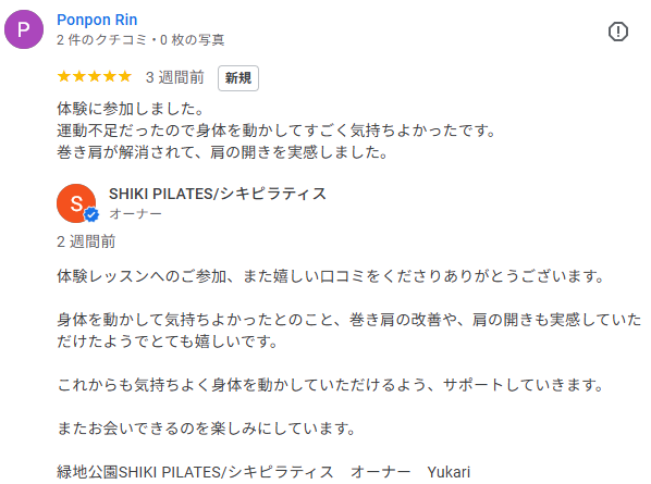 体験レッスンへのご参加、また嬉しい口コミをくださりありがとうございます。